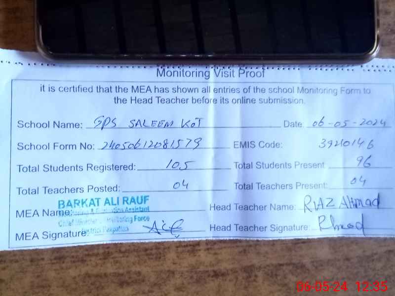 | EMIS Code: 39210146 | Name of School: GPS SALEEM KOT PAKPATTAN | |||