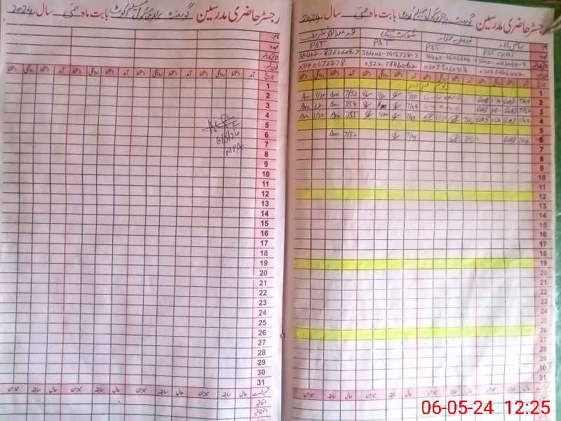 | CNIC | Full Name | Designation | R/C | Absence During Last Calender Month |