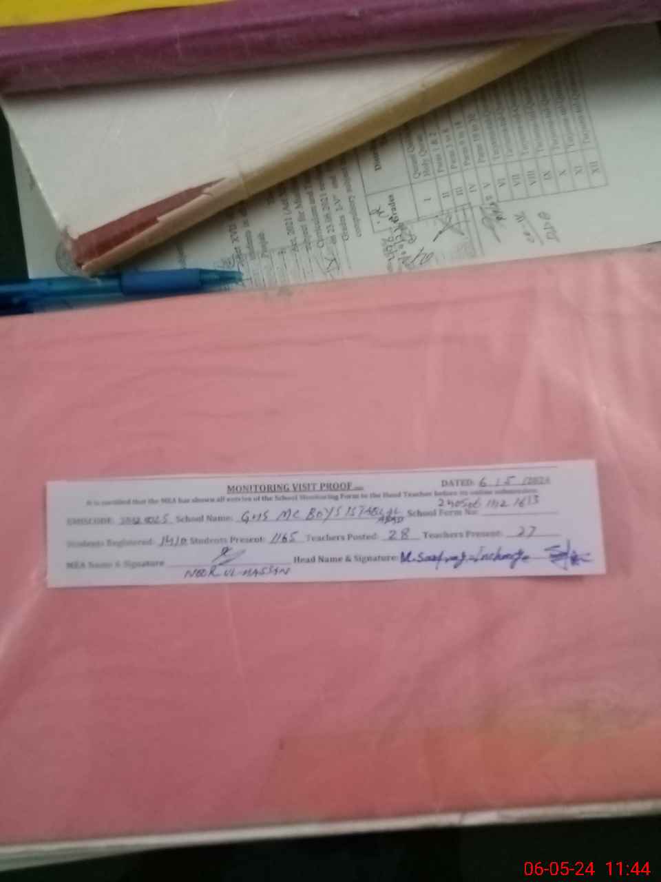 | Certified that this School was Inspected by the Undersigned MEA/DMO Today and the Information Stated Above is as Per Record. | |||||