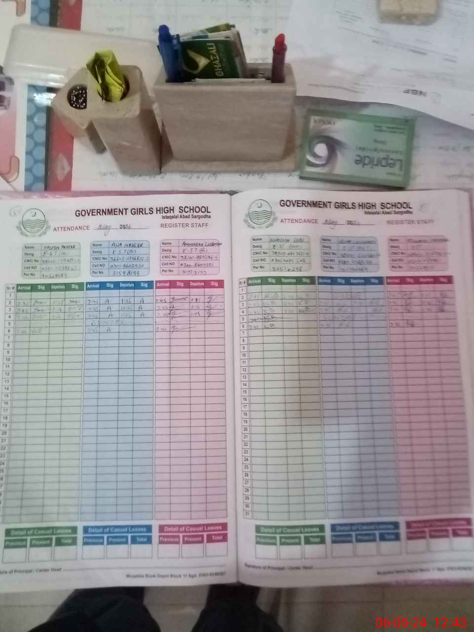 | CNIC | Full Name | Designation | R/C | Absence During Last Calender Month |