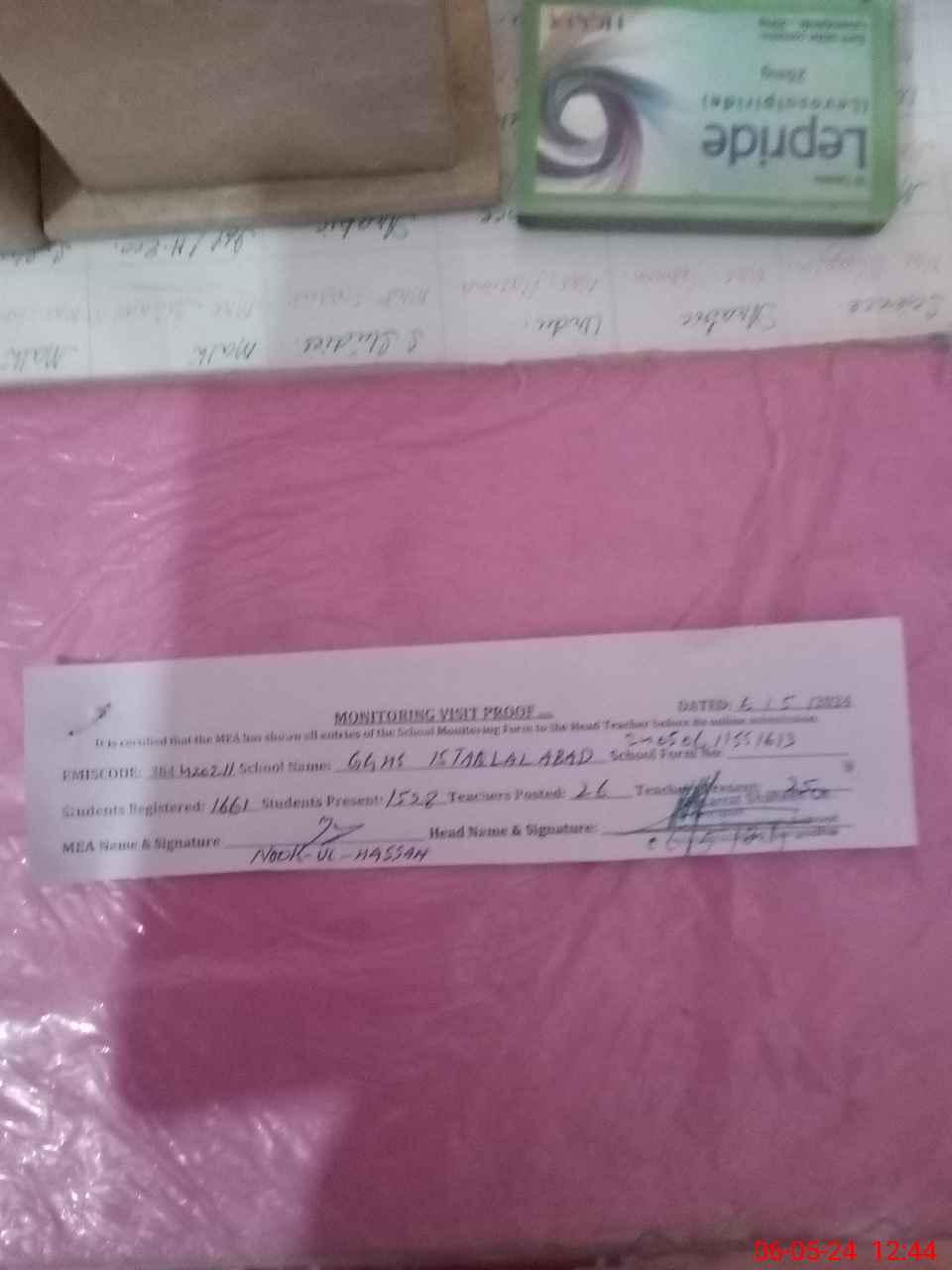 | Certified that this School was Inspected by the Undersigned MEA/DMO Today and the Information Stated Above is as Per Record. | |||||