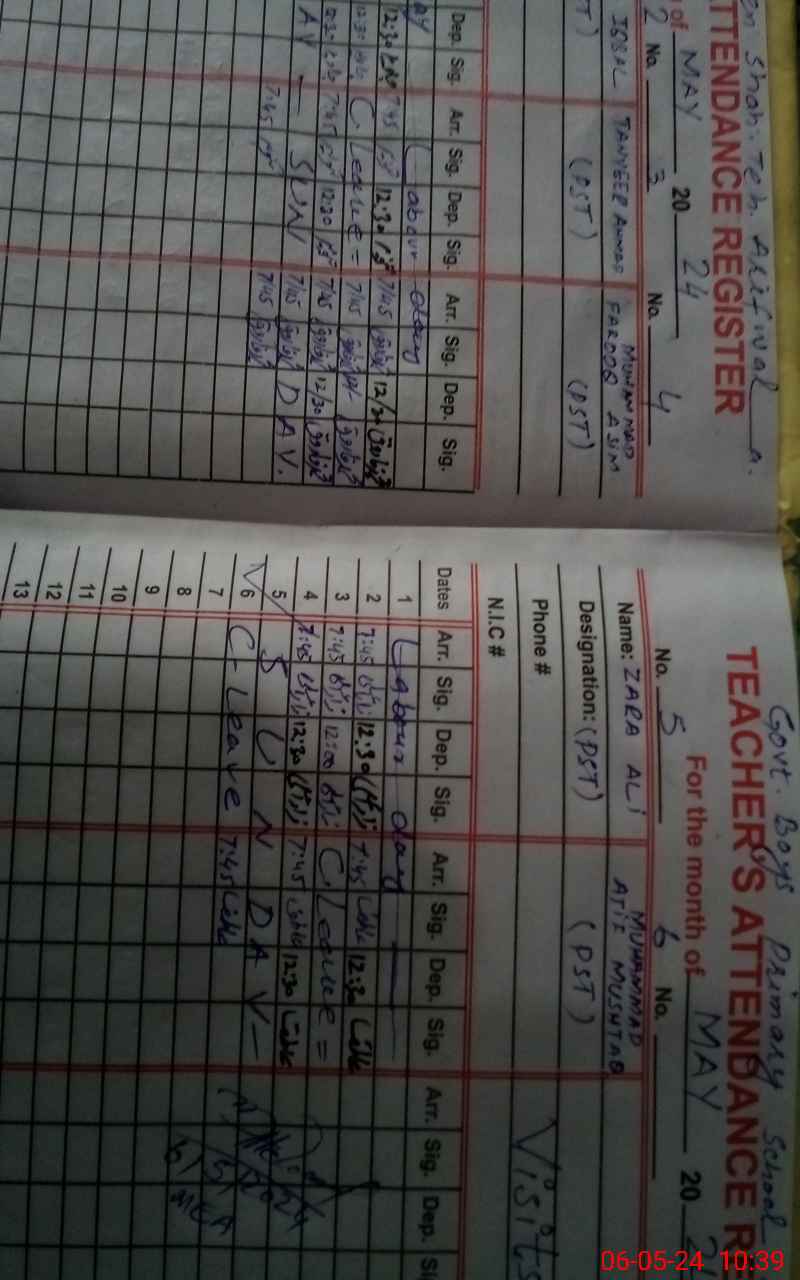 | Name: AB**** MA**** Designation: (School Headmaster's/Headmistress's) PST Phone/Cell Number: 03**** |