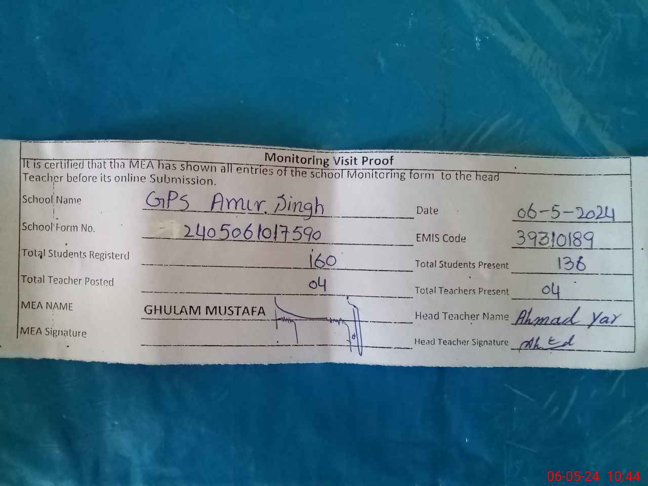 | EMIS Code: 39310189 | Name of School: GPS AMIR SINGH | |||