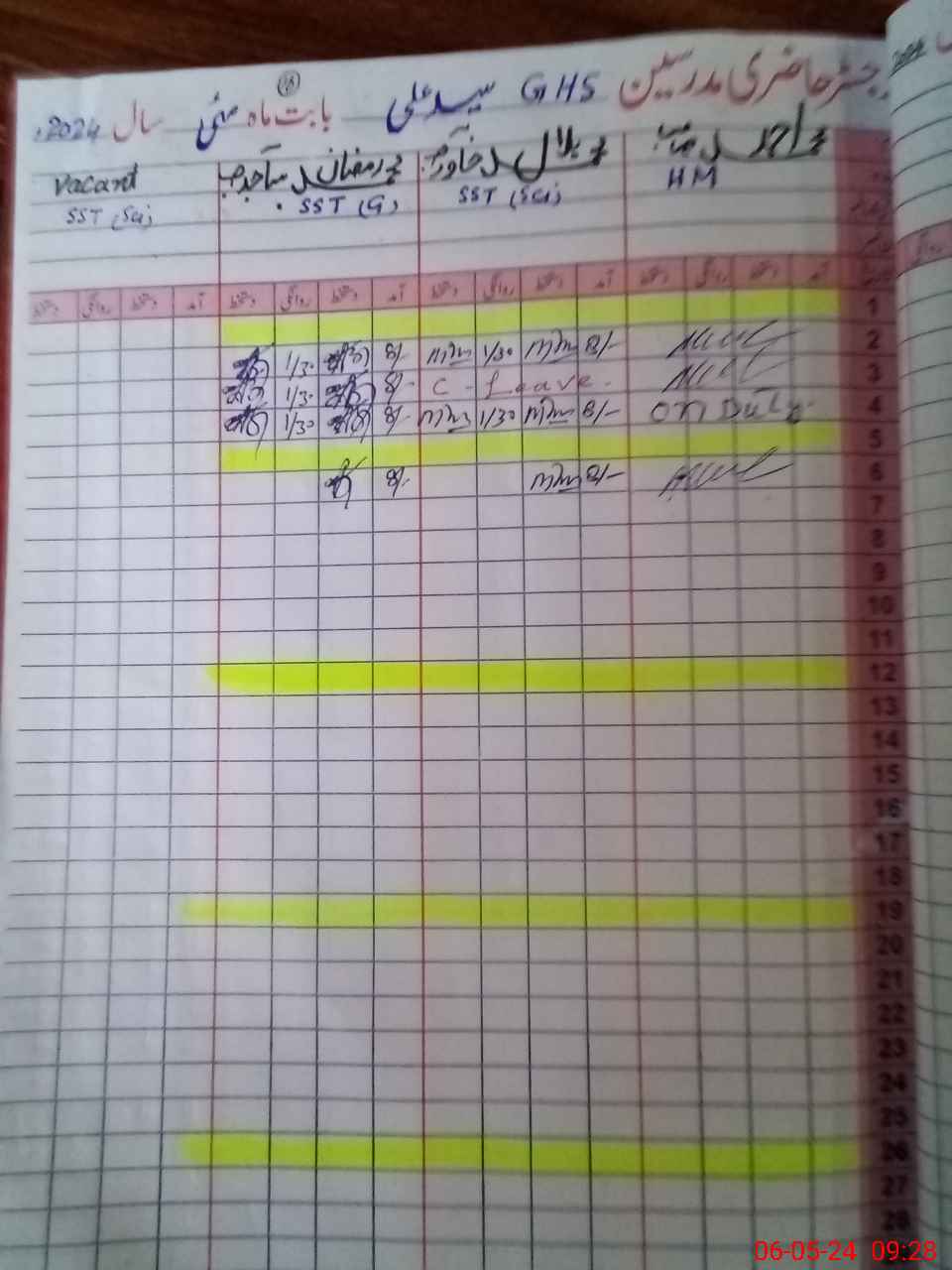 | CNIC | Full Name | Designation | R/C | Absence During Last Calender Month |