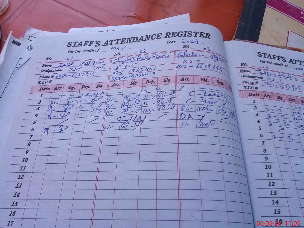 | CNIC | Full Name | Designation | R/C | Absence During Last Calender Month |
