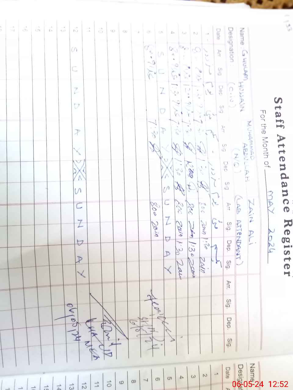 | CNIC | Full Name | Designation | R/C | Absence During Last Calender Month |