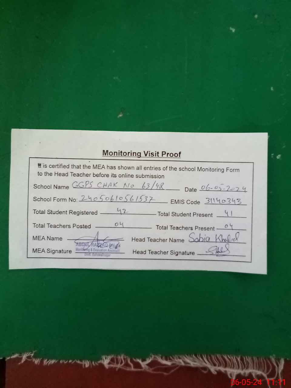 | EMIS Code: 31140343 | Name of School: GGPS CHAK 63/4-R | |||