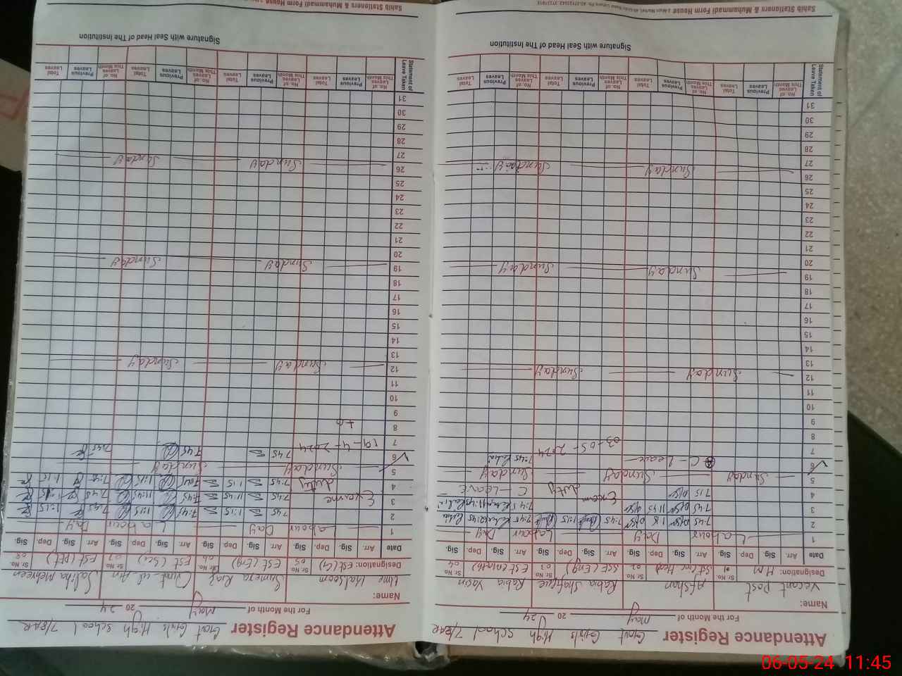 | 36**** | Um**** EKa**** | 1 | 6 | 13 | 0 | 0 | 0 | 0 | 0 | 0 | 6 | Exam Duty | |