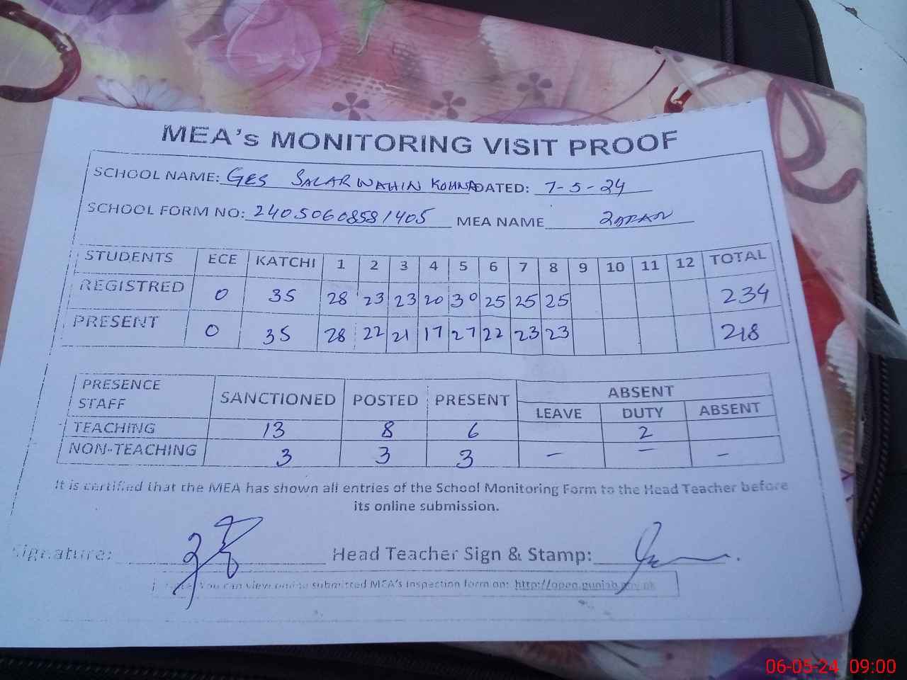 | EMIS Code: 36410330 | Name of School: GES SALAR WAHIN KOHNA, NAWAN SHEHR | |||