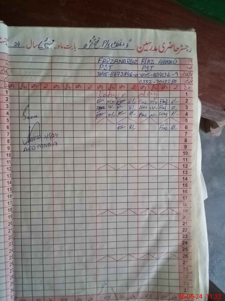 | Name: FI**** AH**** Designation: (School Headmaster's/Headmistress's) PST Phone/Cell Number: 03**** |