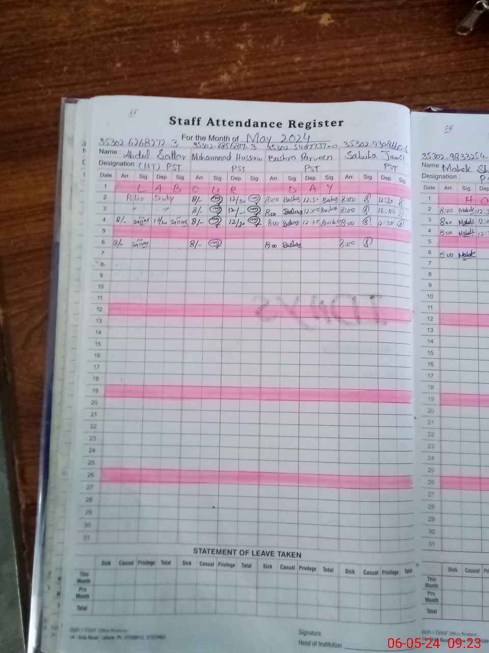 | Name: Ab**** Sa**** Designation: (School Headmaster's/Headmistress's) PST Phone/Cell Number: 03**** |