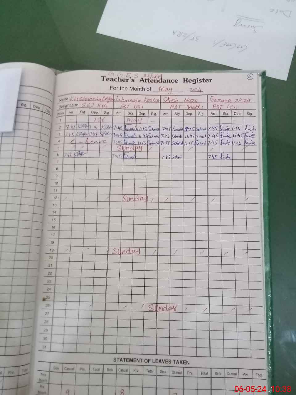 | Name: KH**** BE**** Designation: (School Headmaster's/Headmistress's) SST Phone/Cell Number: 03**** |