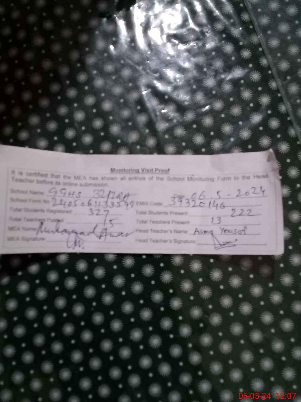 | EMIS Code: 39320140 | Name of School: GGHS 32/2-R OKARA | |||