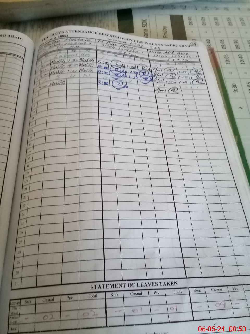 | 31**** | Mu**** Ra**** | PST | Regular | 0 | 15 | 0 | 0 | 0 | 0 | 0 | 0 | 0 | Exam Duty |