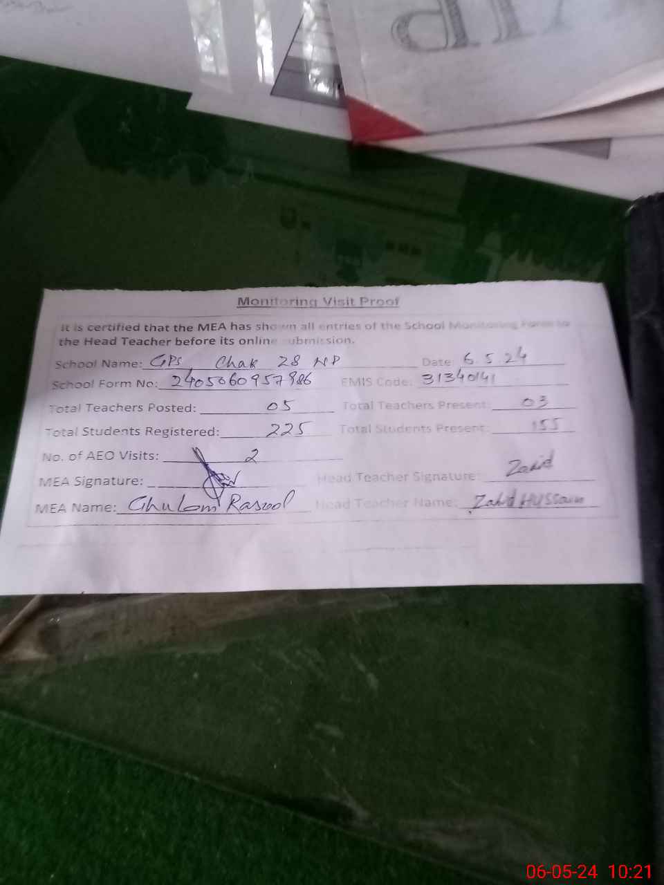 | EMIS Code: 31340141 | Name of School: GPS CHAK NO 28/NP | |||