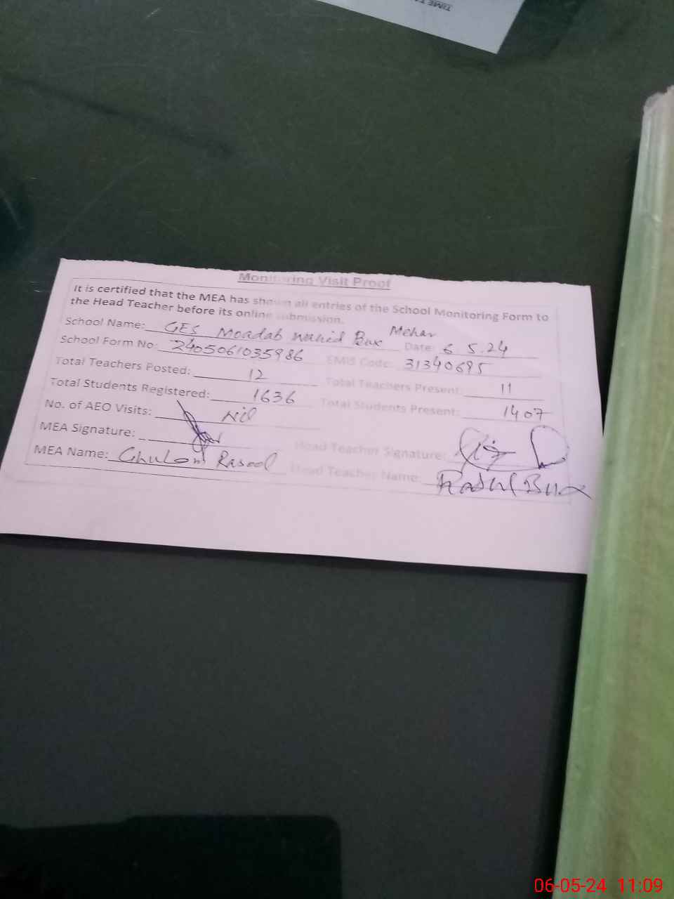 | Certified that this School was Inspected by the Undersigned MEA/DMO Today and the Information Stated Above is as Per Record. | |||||