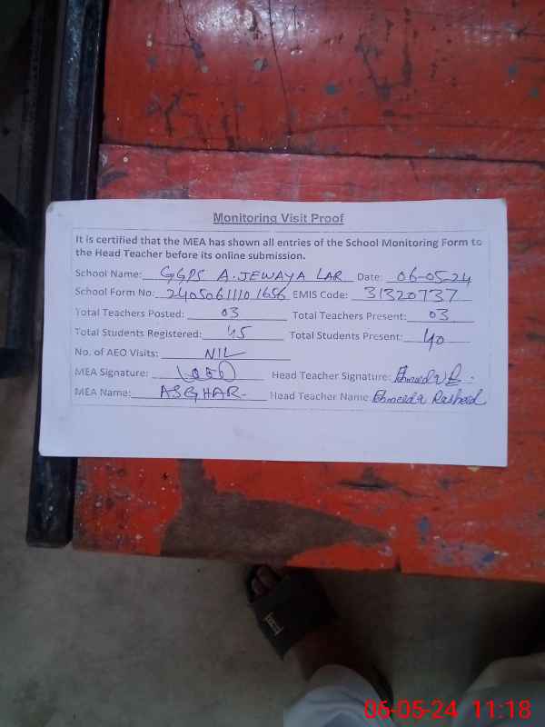 | EMIS Code: 31320737 | Name of School: GGPS ALLAH JIWAYA LARR | |||