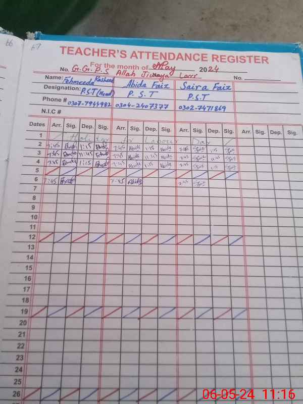 | Name: FA**** RA**** Designation: (School Headmaster's/Headmistress's) PST/PTC/JV Phone/Cell Number: 03**** |