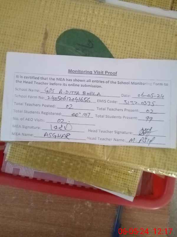 | EMIS Code: 31320335 | Name of School: GPS ALLAH DITTA BHELA | |||