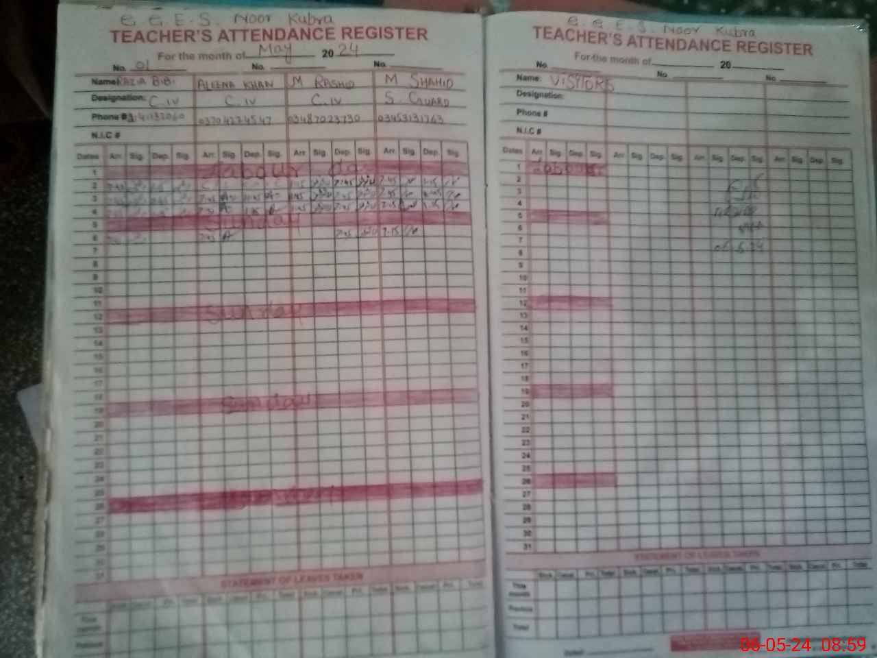 | CNIC | Full Name | Designation | R/C | Absence During Last Calender Month |