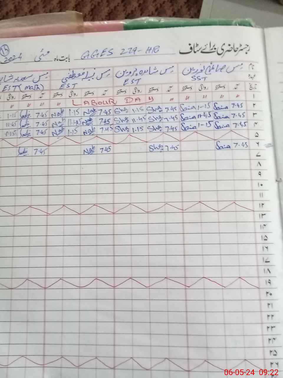 | 31**** | Ra**** Ba**** | PST | Regular | 0 | 0 | 30 | 0 | 0 | 0 | 0 | 30 | 0 | Absent (Un-Authorized) |