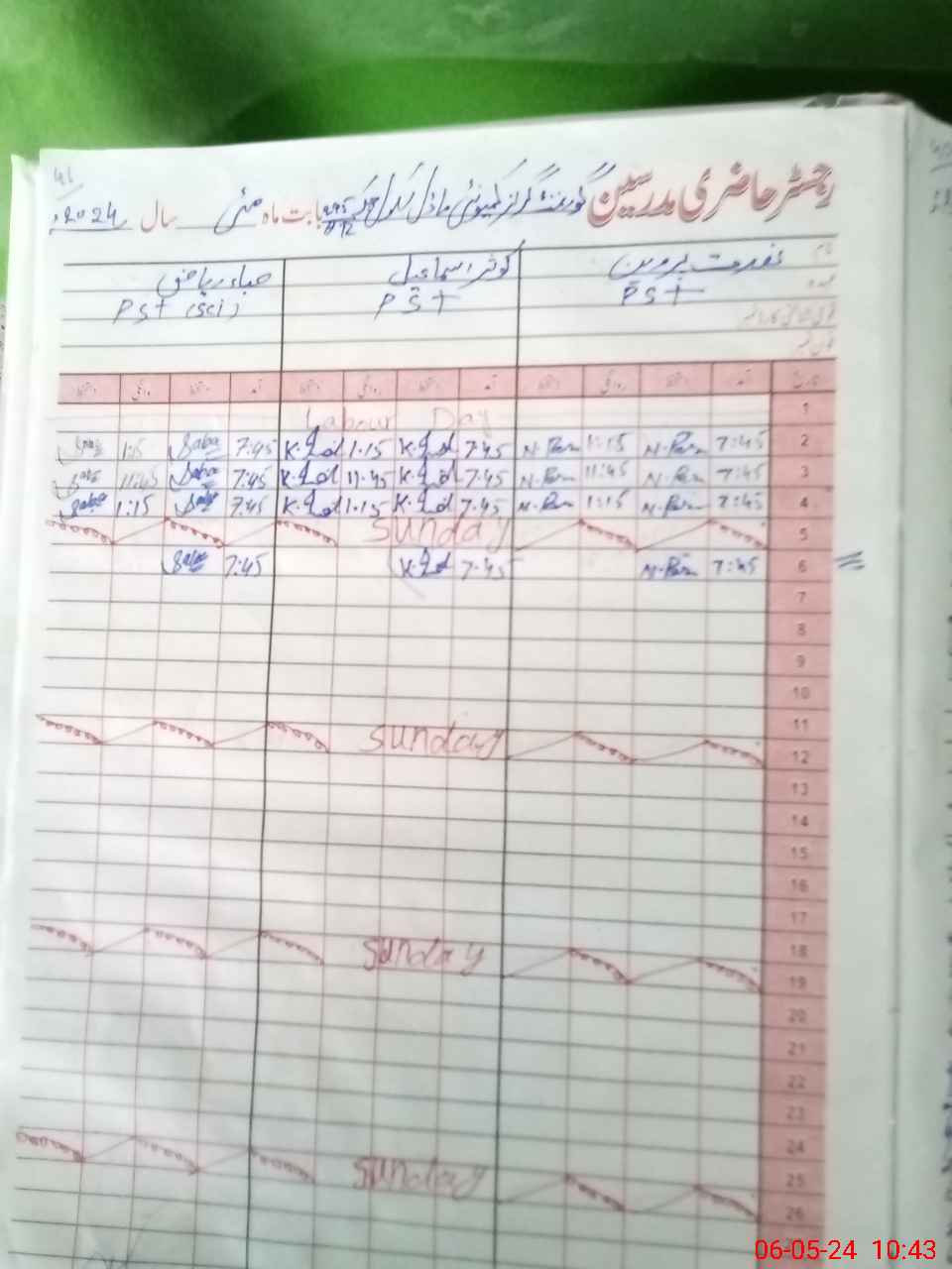 | CNIC | Full Name | Designation | R/C | Absence During Last Calender Month |