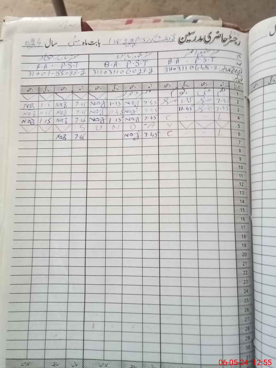 | 31**** | Sh**** Ak**** | 1 | 2 | 0 | 0 | 0 | 0 | 0 | 0 | 0 | 2 | Absent (Un-Authorized) | |