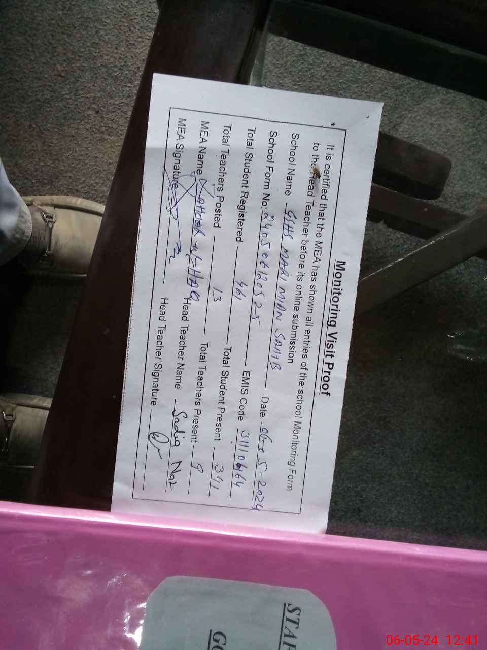 | EMIS Code: 31110464 | Name of School: GGHS MARI MIAN SAHIB | |||