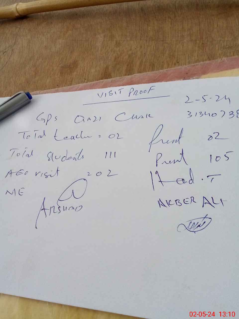 | Attendance Register | Head Teacher | MEA with School | Visit Proof |