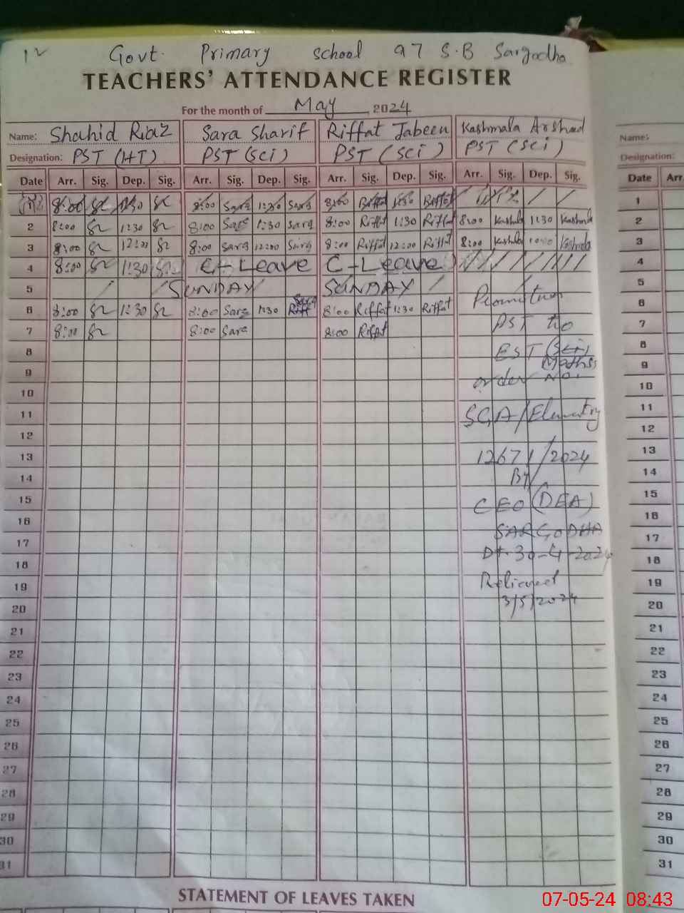 | Name: HA**** AL**** Designation: (School Headmaster's/Headmistress's) PST Phone/Cell Number: 03**** |