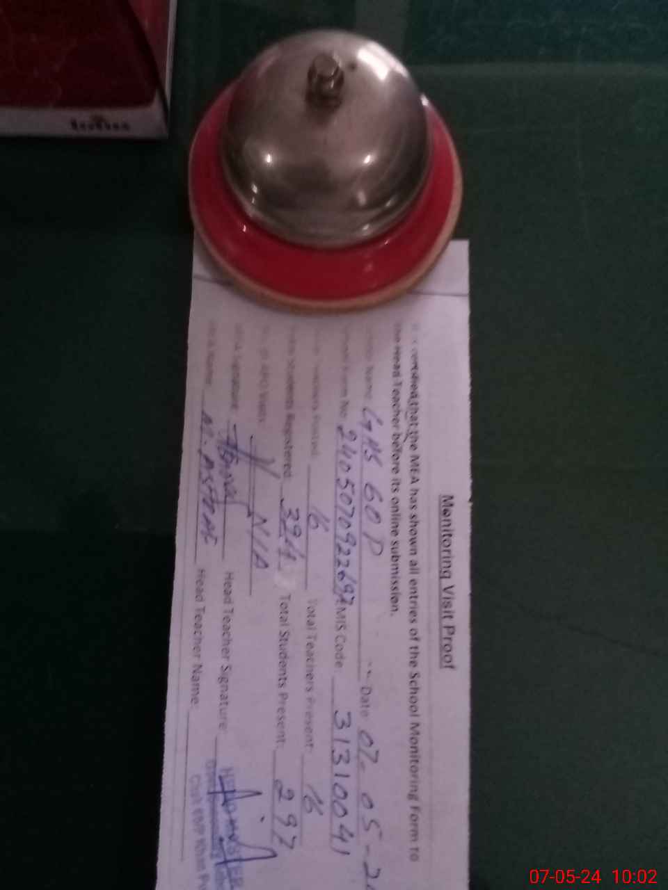 | Attendance Register | Head Teacher | MEA with School | Visit Proof |