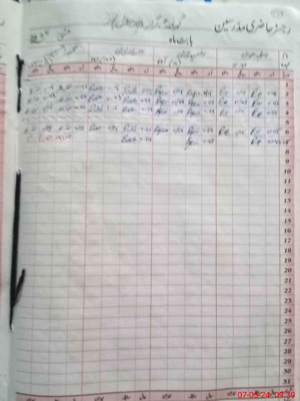 | CNIC | Full Name | Designation | R/C | Absence During Last Calender Month |