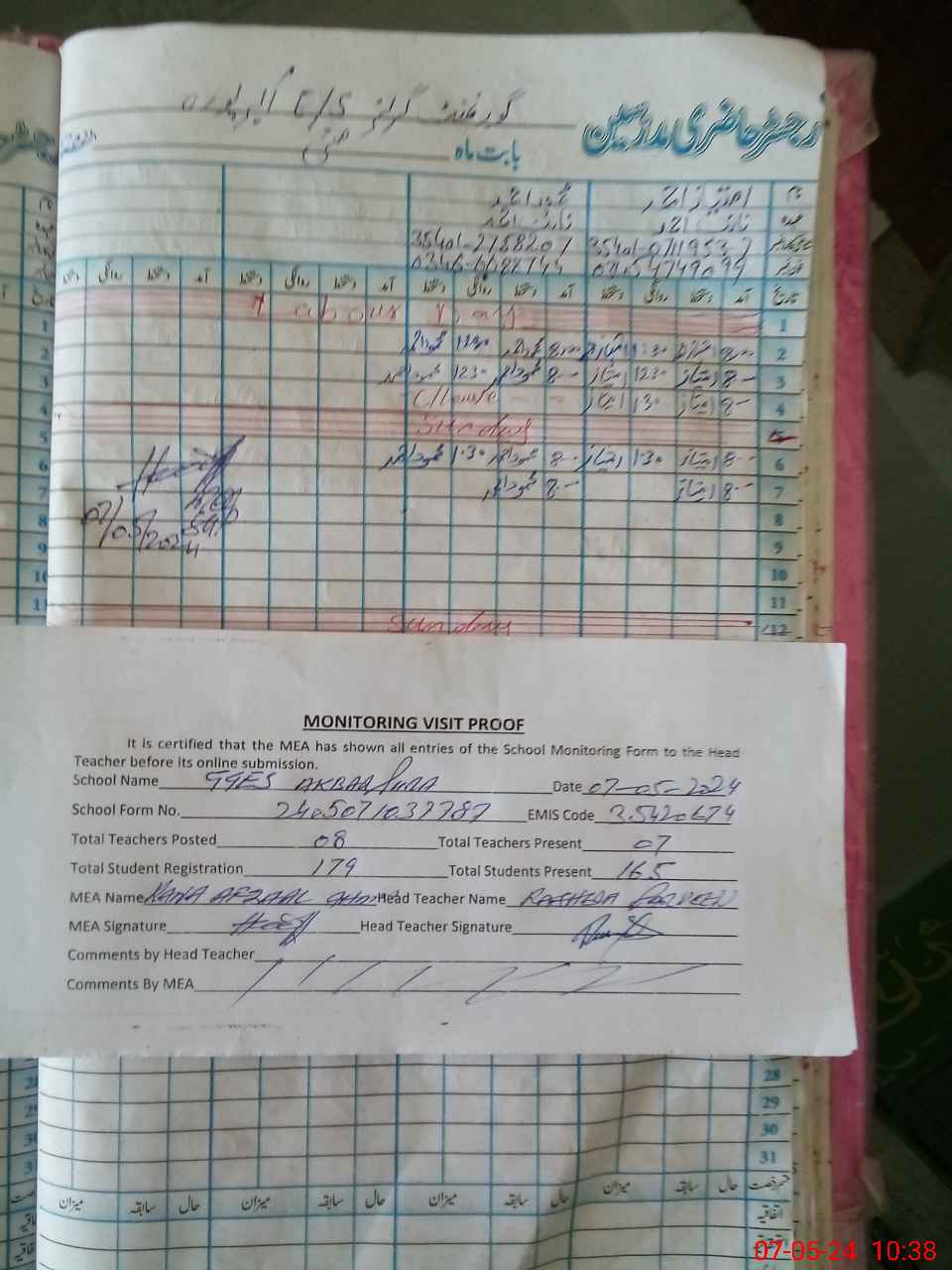 | Monitoring Date: 07-05-2024 | Start Time: 07-05-2024 10:03 AM | End Time: 07-05-2024 10:39 AM | Name of MEA: Ra**** Af**** Ah**** (R**** 25**** | |