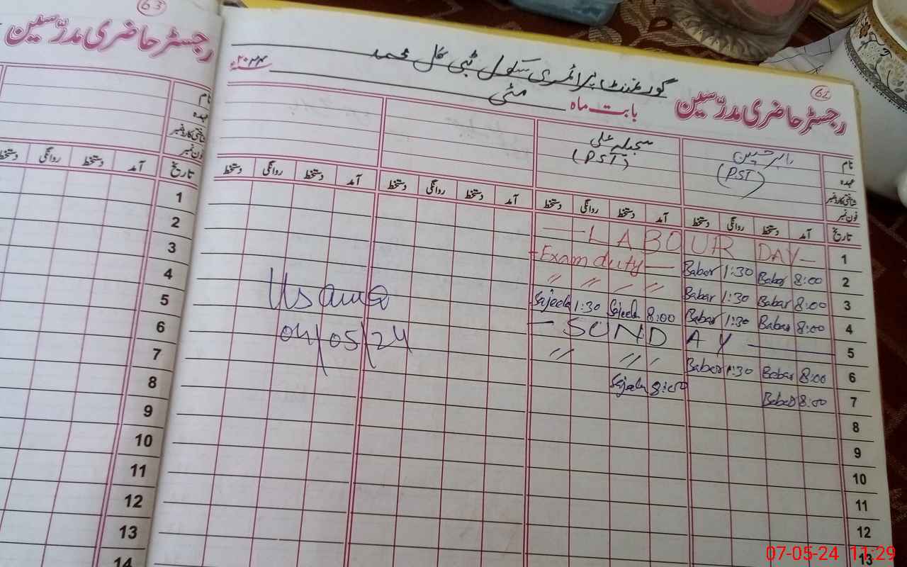 | Name: MU**** SA**** Designation: (School Headmaster's/Headmistress's) PST Phone/Cell Number: 03**** |