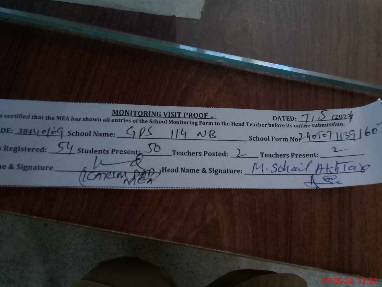 | EMIS Code: 38440109 | Name of School: GPS CHAK NO.114 NB | |||