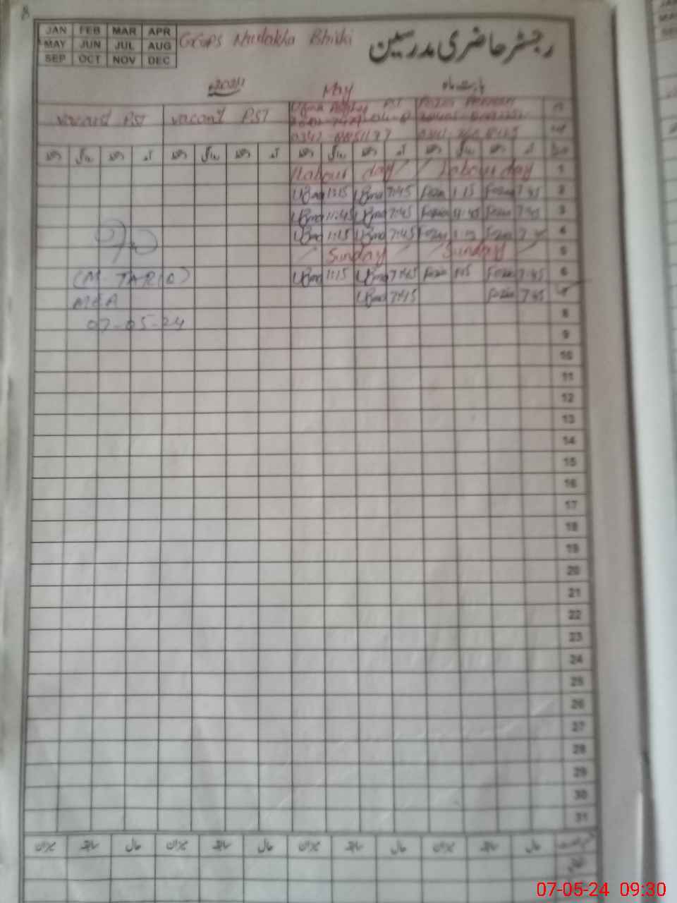 | CNIC | Full Name | Designation | R/C | Absence During Last Calender Month |