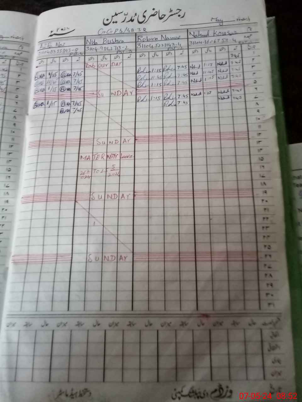 | 31**** | Ni**** Bu**** | PST | Regular | 30 | 0 | 0 | 30 | 0 | 0 | 0 | 0 | 0 | Maternity |