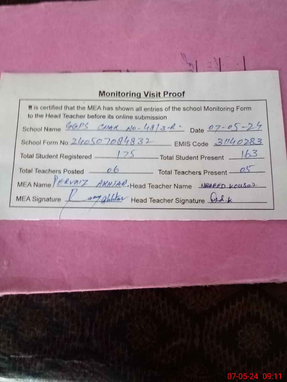 | EMIS Code: 31140283 | Name of School: GGPS CHAK NO 48/3-R | |||