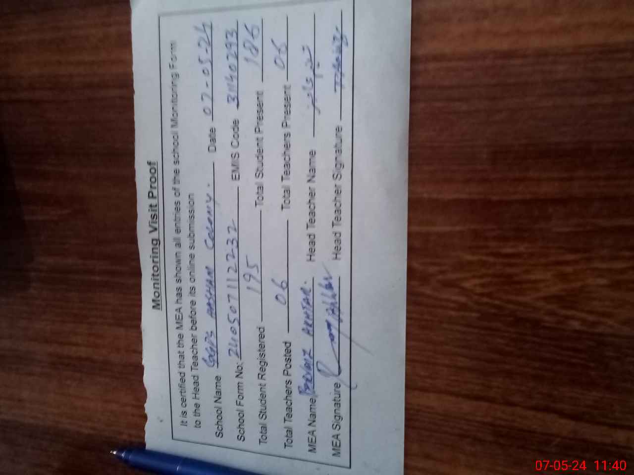 | Certified that this School was Inspected by the Undersigned MEA/DMO Today and the Information Stated Above is as Per Record. | |||||