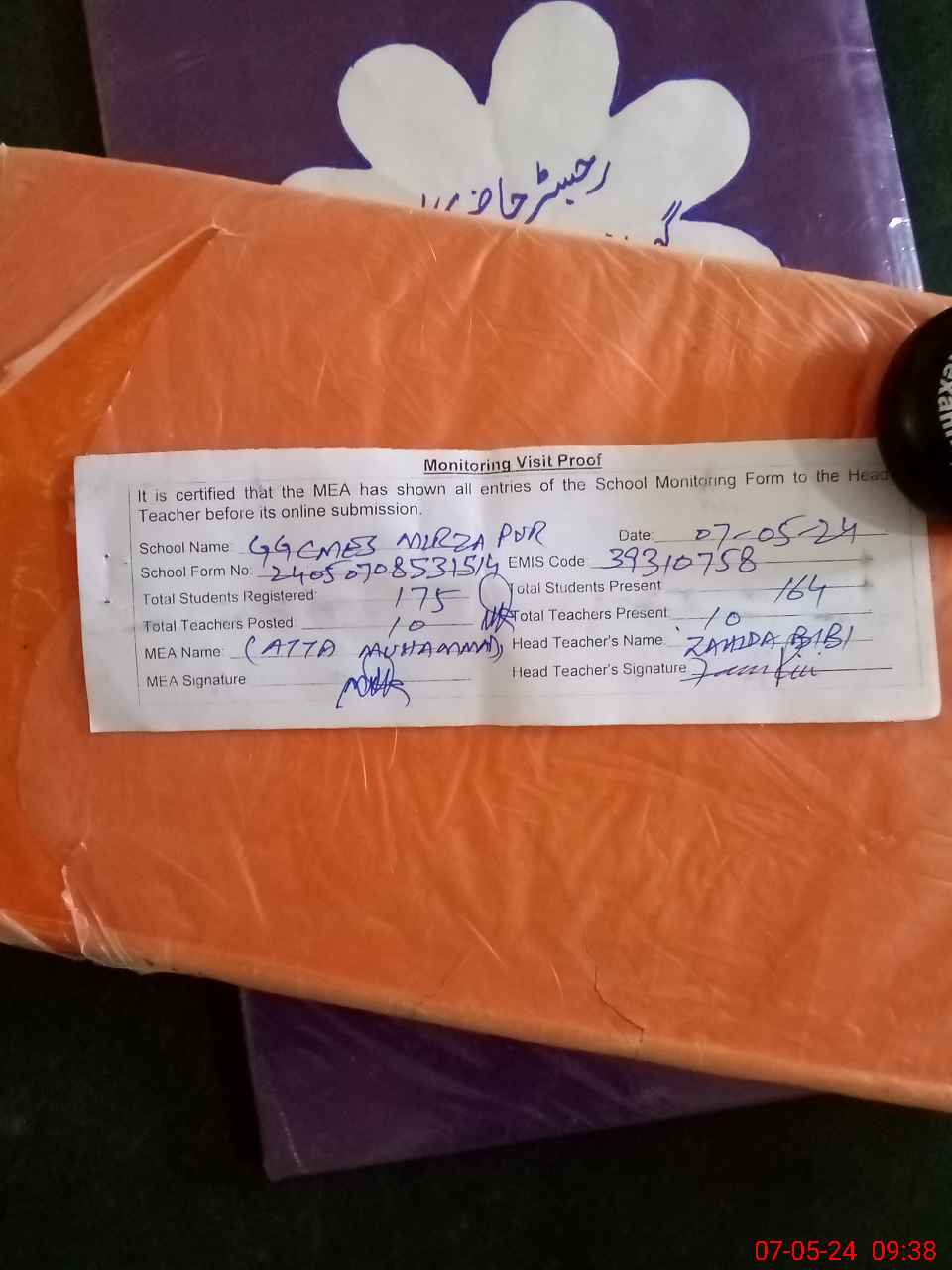| EMIS Code: 39310758 | Name of School: GGCMES MIRZA PUR | |||