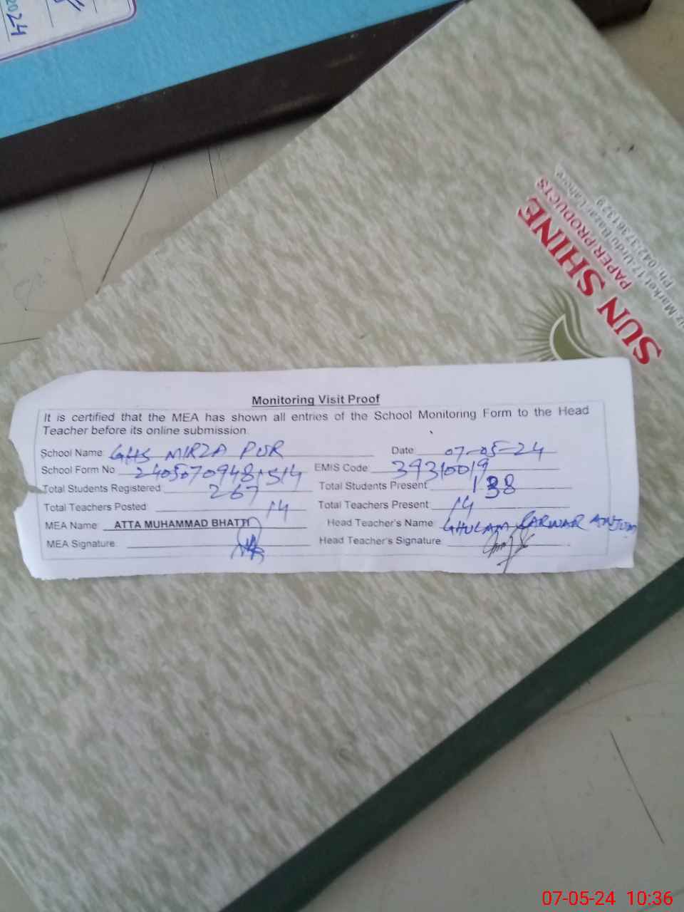 | EMIS Code: 39310019 | Name of School: GHS MIRZA PUR | |||