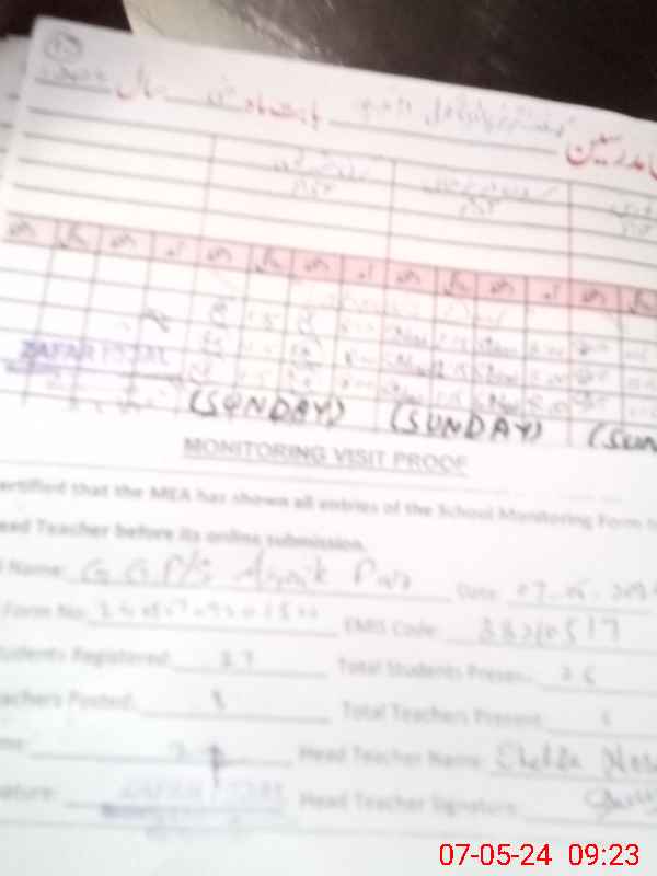 | Attendance Register | Head Teacher | MEA with School | Visit Proof |