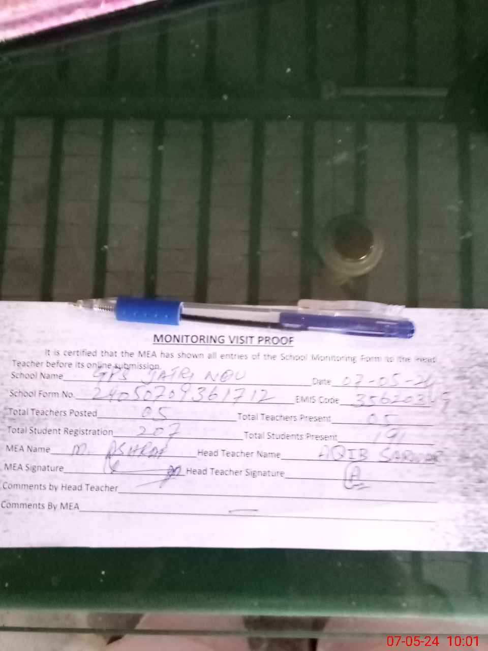 | Certified that this School was Inspected by the Undersigned MEA/DMO Today and the Information Stated Above is as Per Record. | |||||