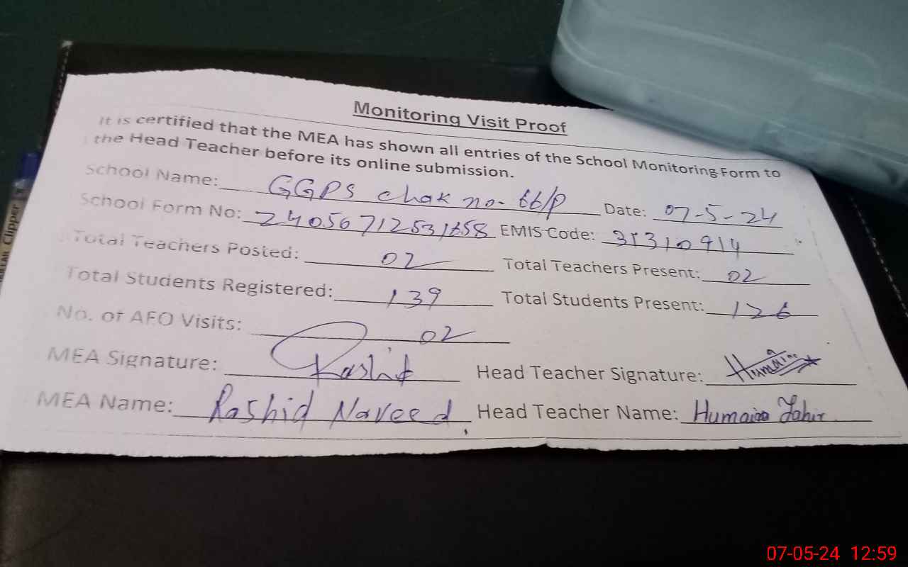| EMIS Code: 31310914 | Name of School: GGPS 66/P JALAL PUR | |||