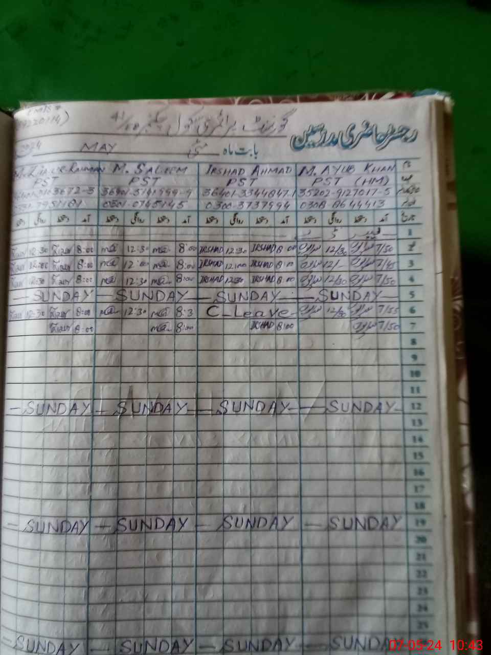 | CNIC | Full Name | Designation | R/C | Absence During Last Calender Month |