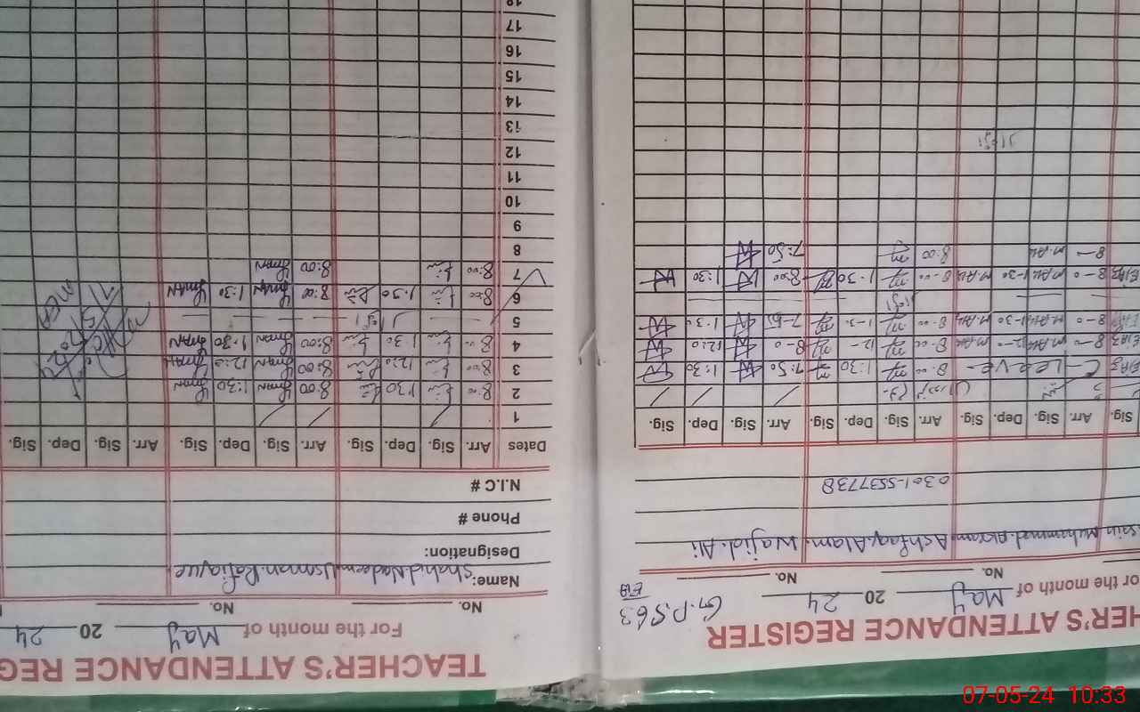 | Name: SH**** NA**** Designation: (School Headmaster's/Headmistress's) PST Phone/Cell Number: 03**** |