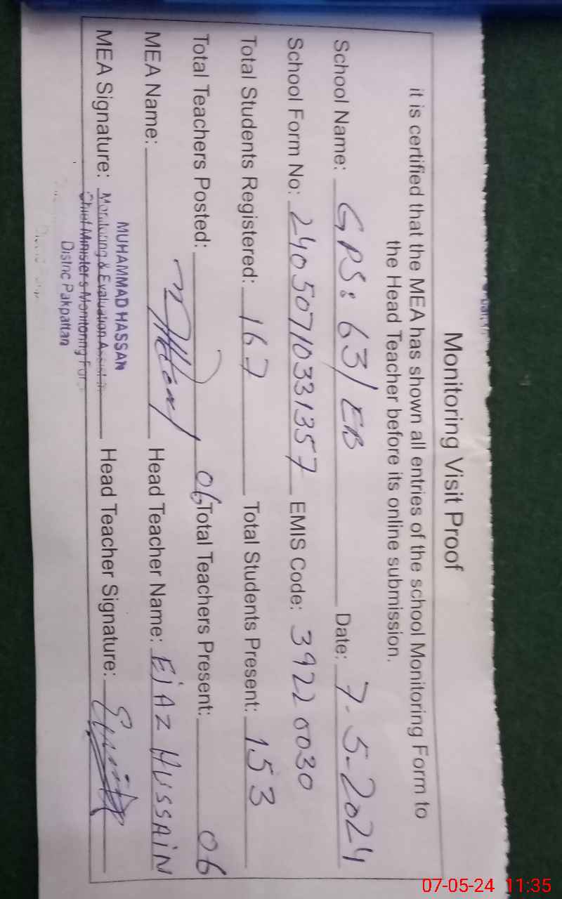 | EMIS Code: 39220200 | Name of School: GPS 63 EB | |||