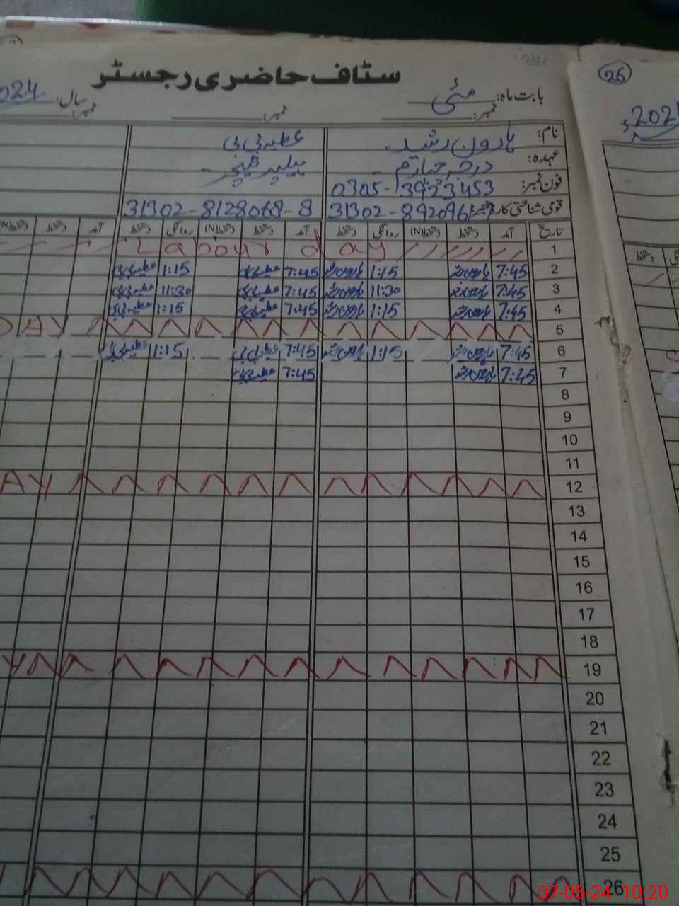 | CNIC | Full Name | Designation | R/C | Absence During Last Calender Month |