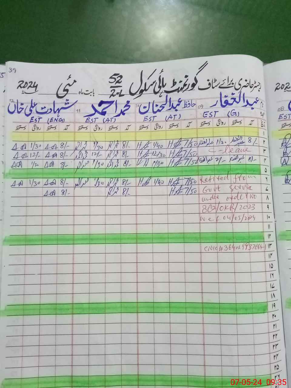 | CNIC | Full Name | Designation | R/C | Absence During Last Calender Month |