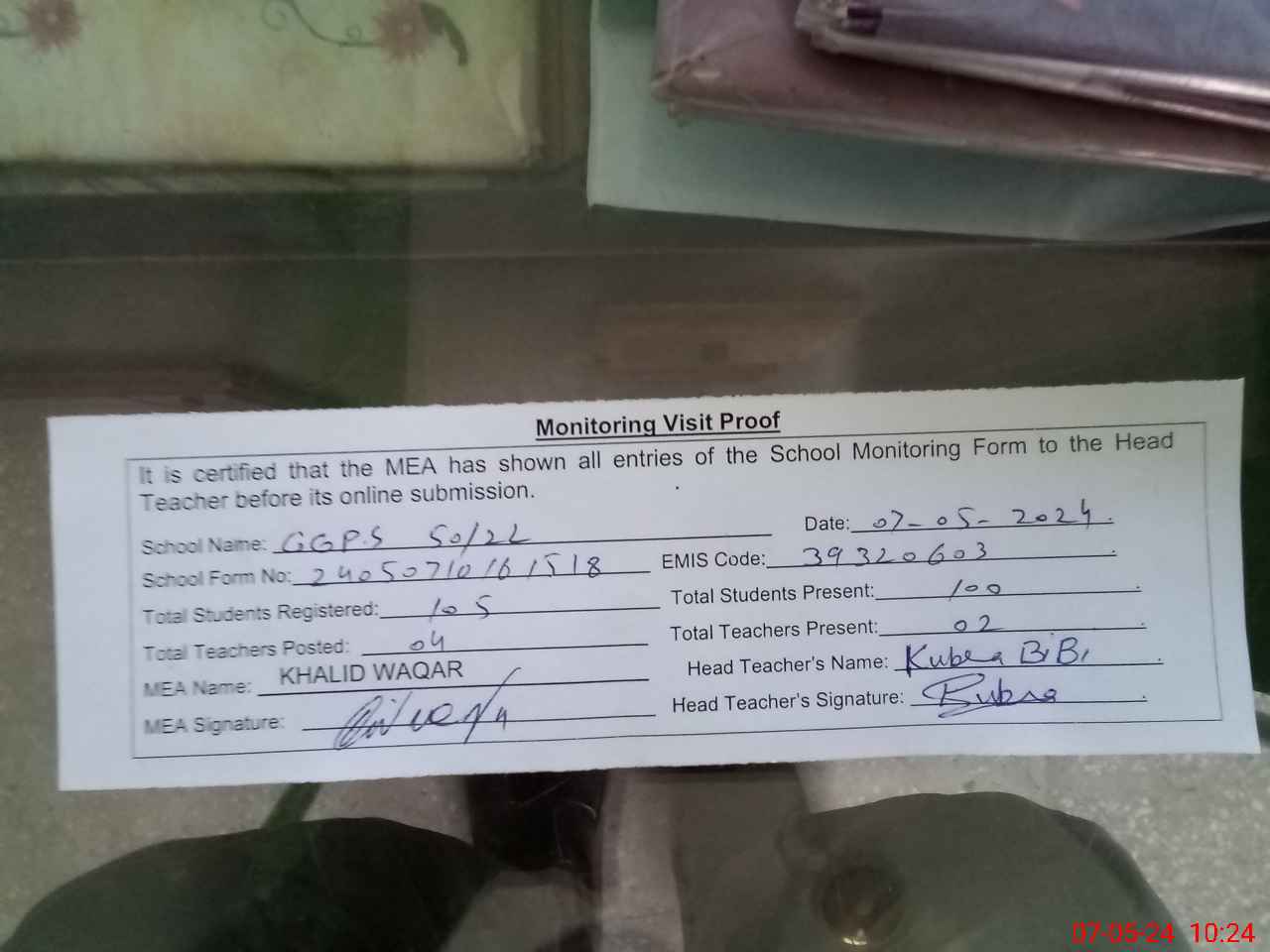 | Certified that this School was Inspected by the Undersigned MEA/DMO Today and the Information Stated Above is as Per Record. | |||||